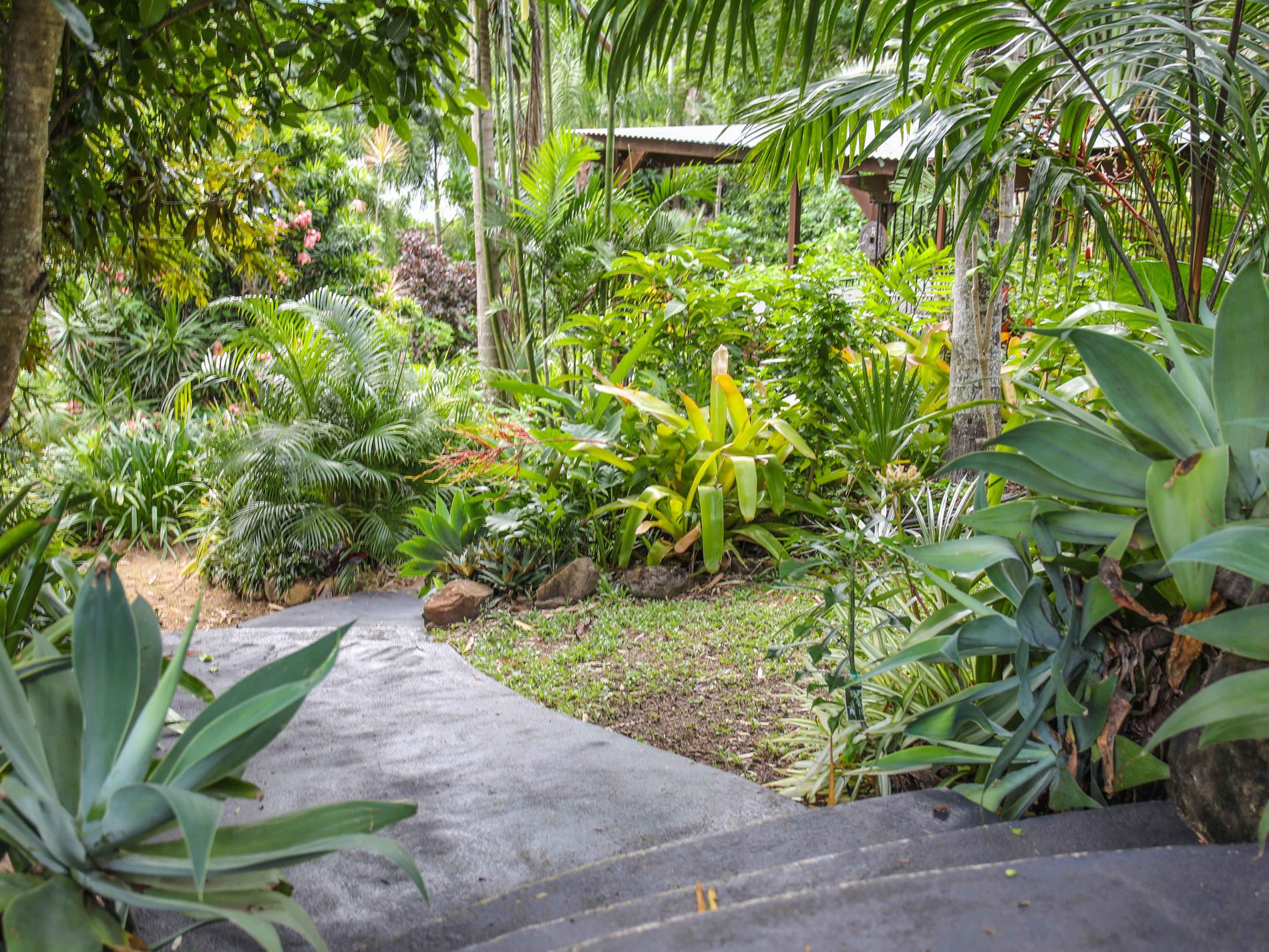 Amongst the beautiful topical gardens sits the 8-person swim spa in the shade of a Balinese inspired gazebo.
