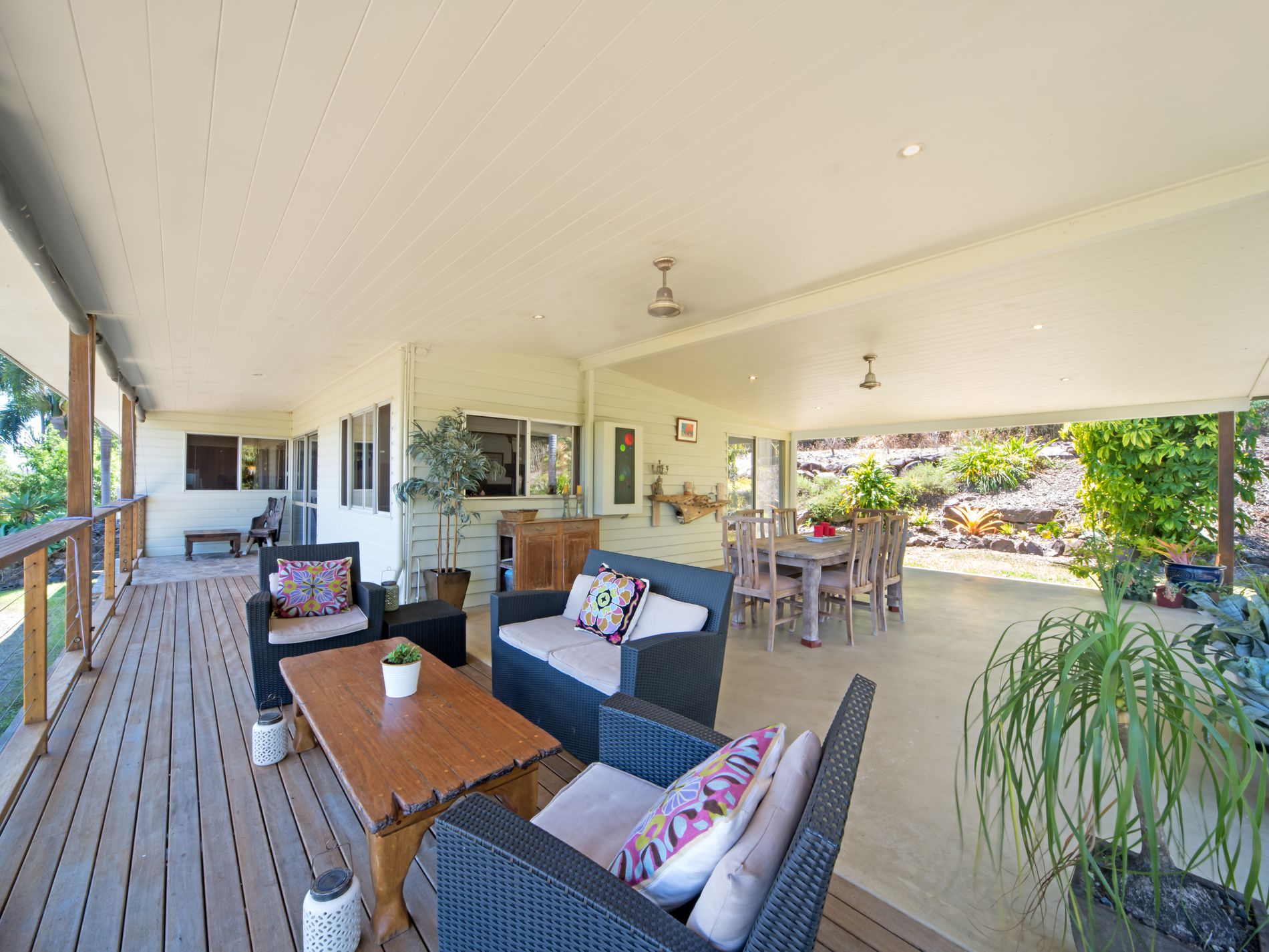 - Large entertaining area with views over mountain ranges and cane paddocks,