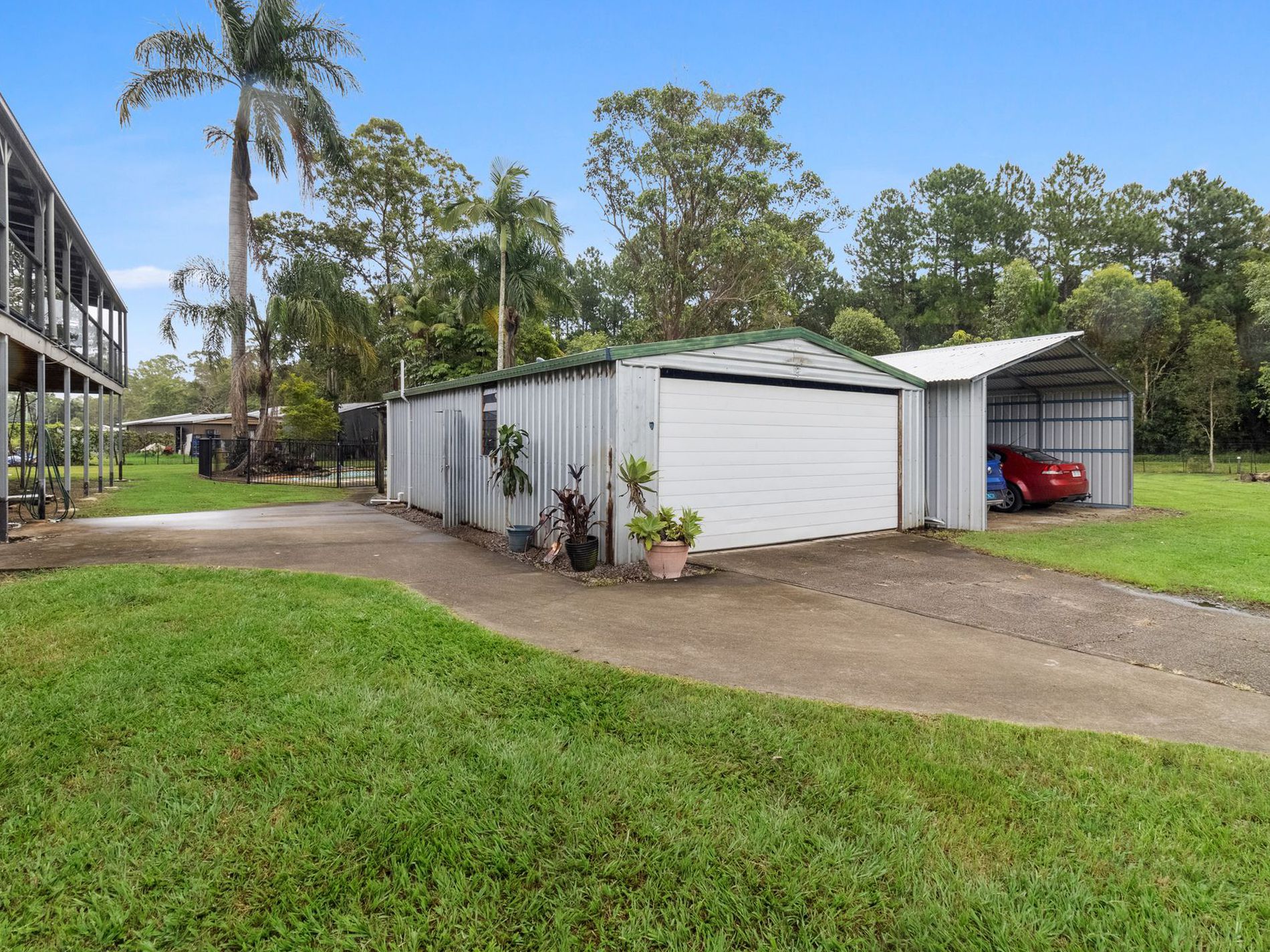 - Spacious garage with patio and additional shed