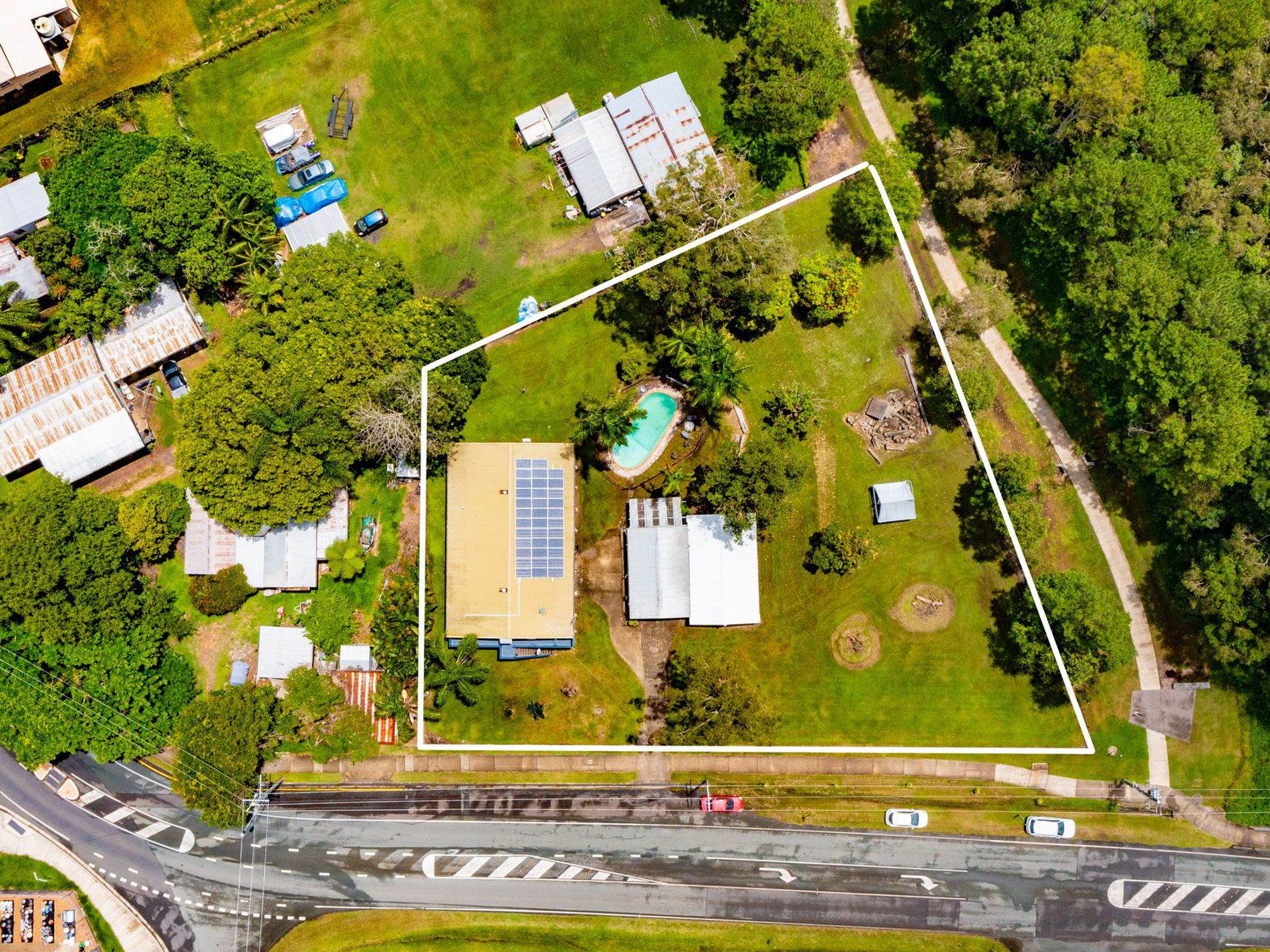 - In-ground pool with bushy outlook