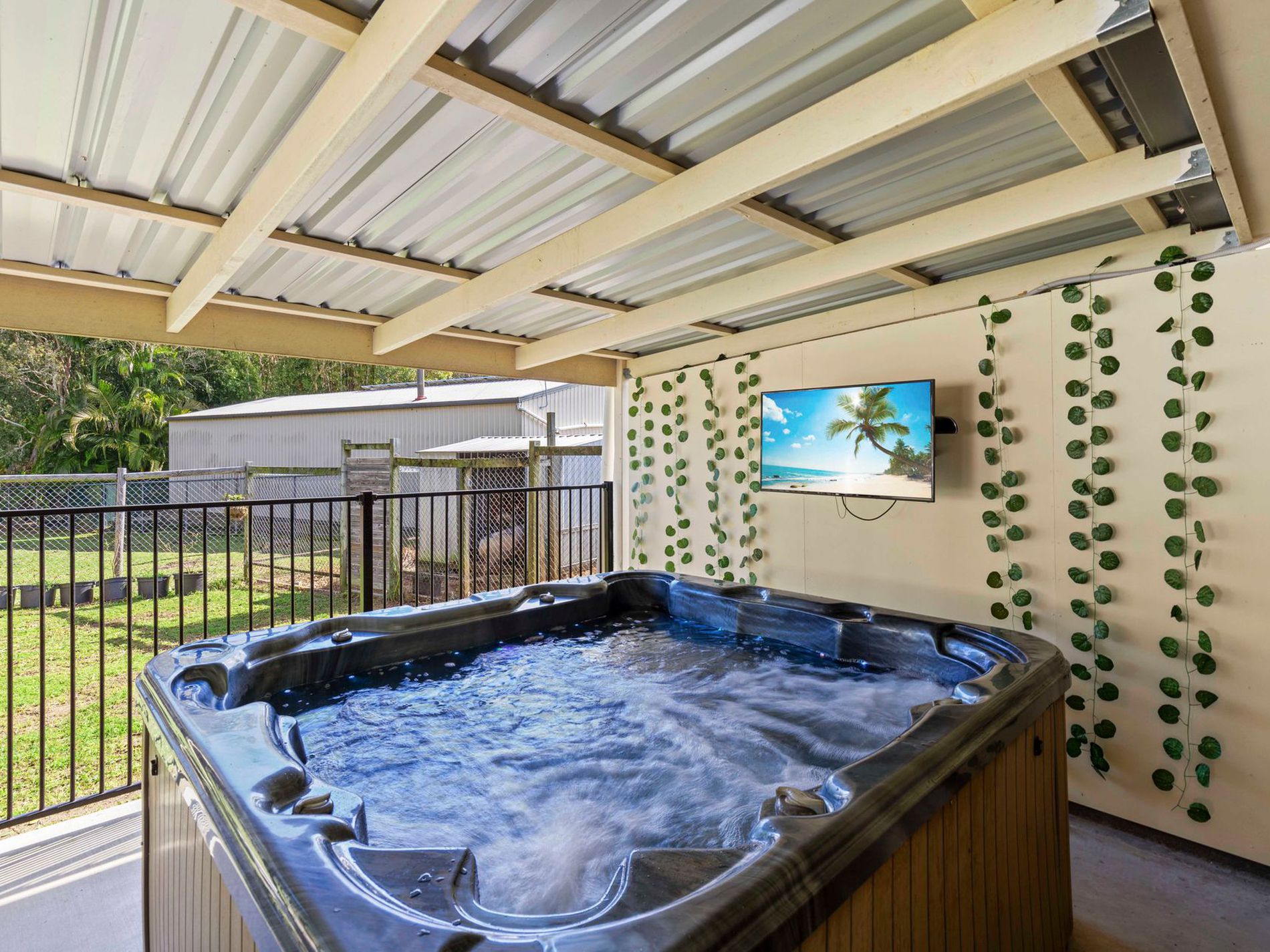 - Outdoor Entertaining Area with Spa Bath and Mounted TV