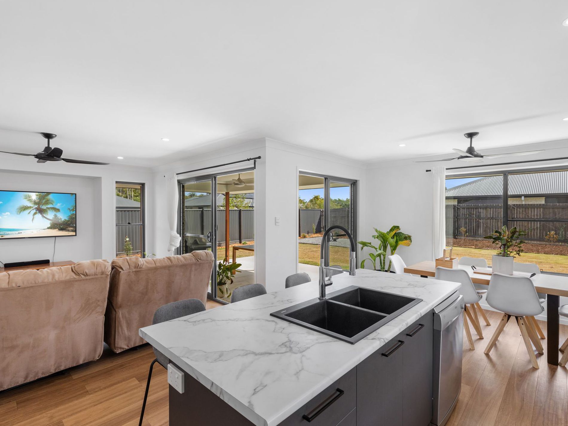 - Black ceiling fans throughout