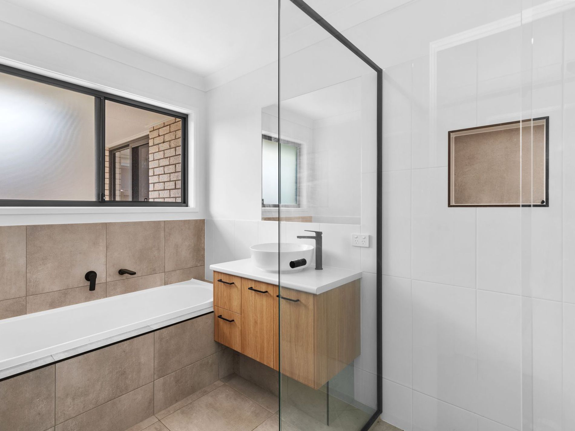 - Black taps and trims in bathrooms
