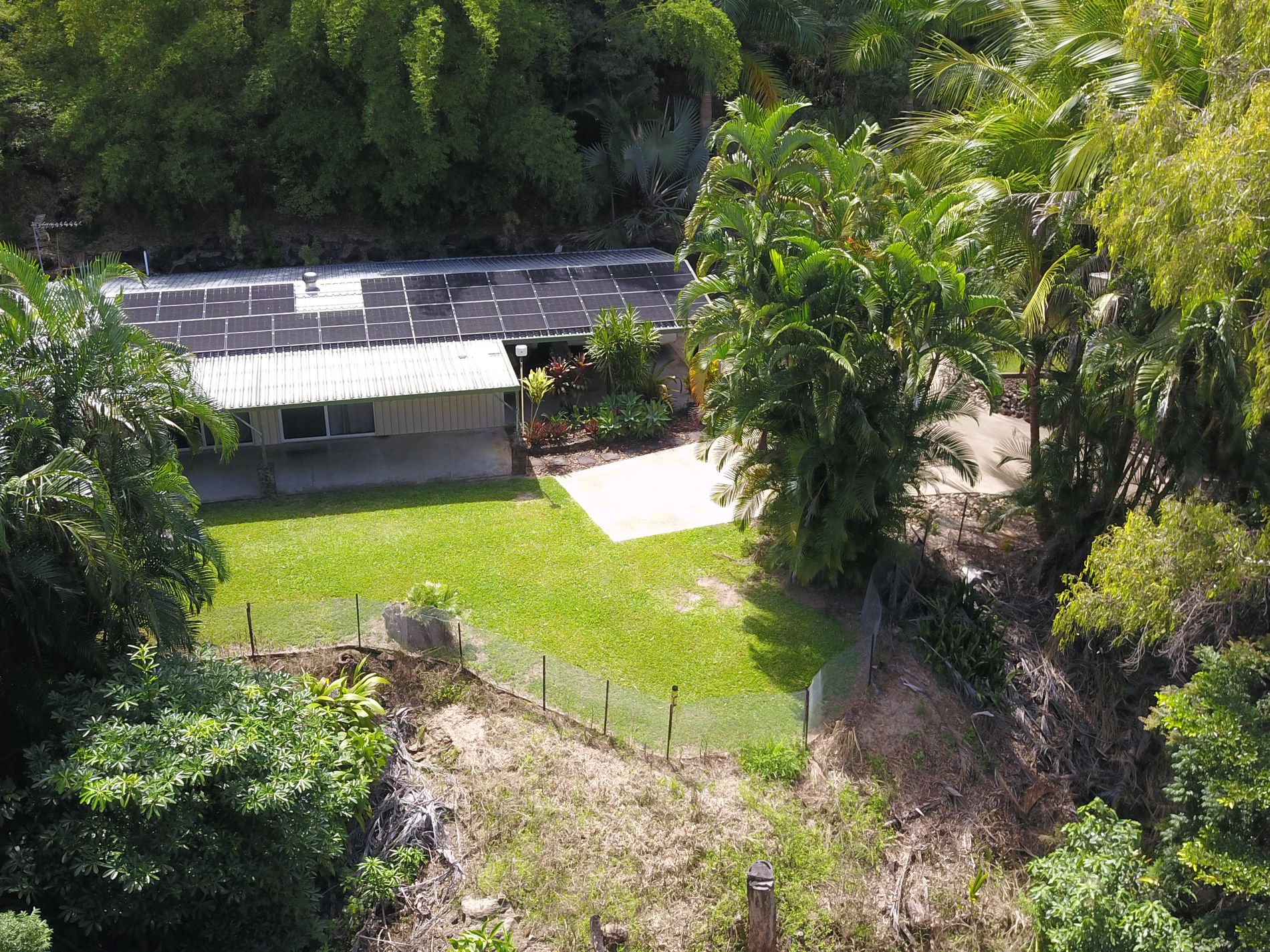 The flat orchard area is fenced and has mature mango and lychee trees. The total area of the property is 2.2 hectares.