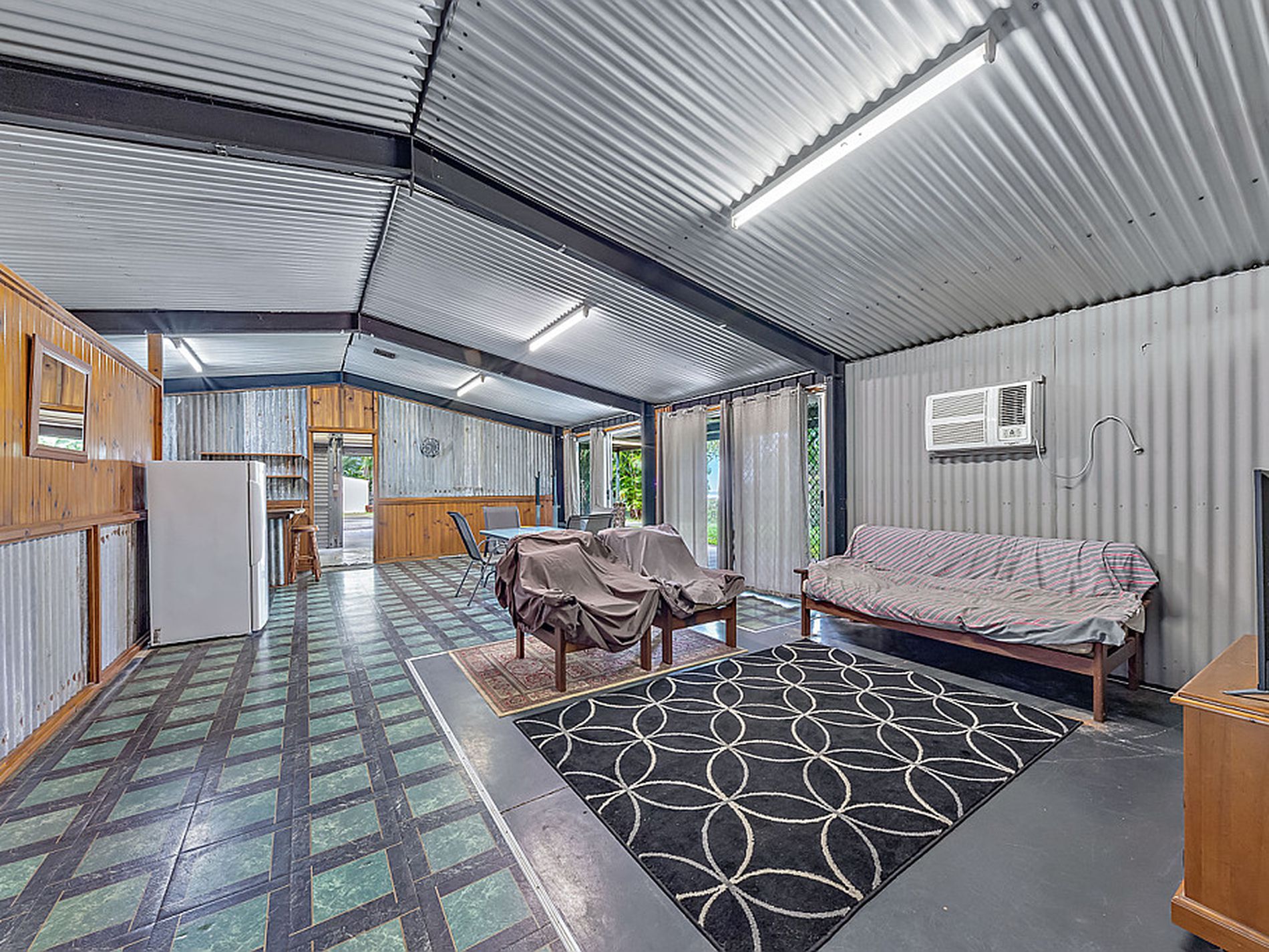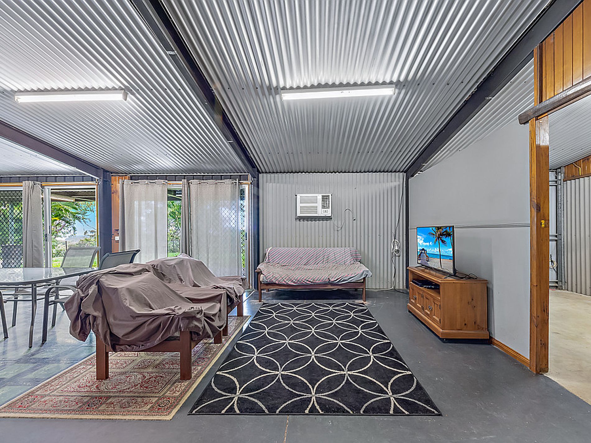 What is being offered is a huge Council approved 7 bay shed which is 21 meters long by 7 meters wide. It has a shower and toilet, 160 litre hot water system, septic system, power, phone, air-conditioning, and is fully fly screened with a potable bore water supply. There is also a new 10kw solar system with full monitoring and a new concrete driveway to the site.