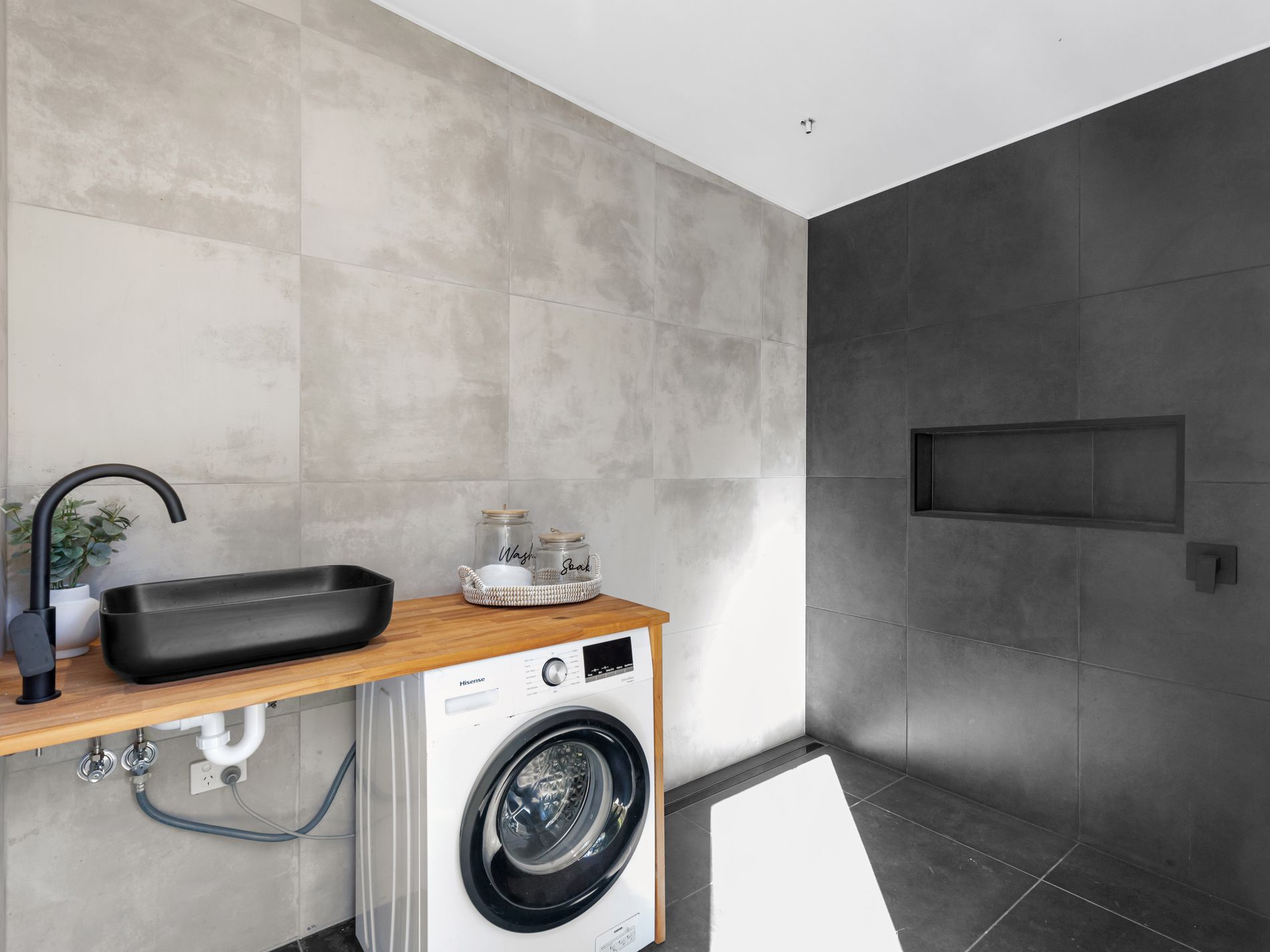 Separate laundry with a shower for added convenience
