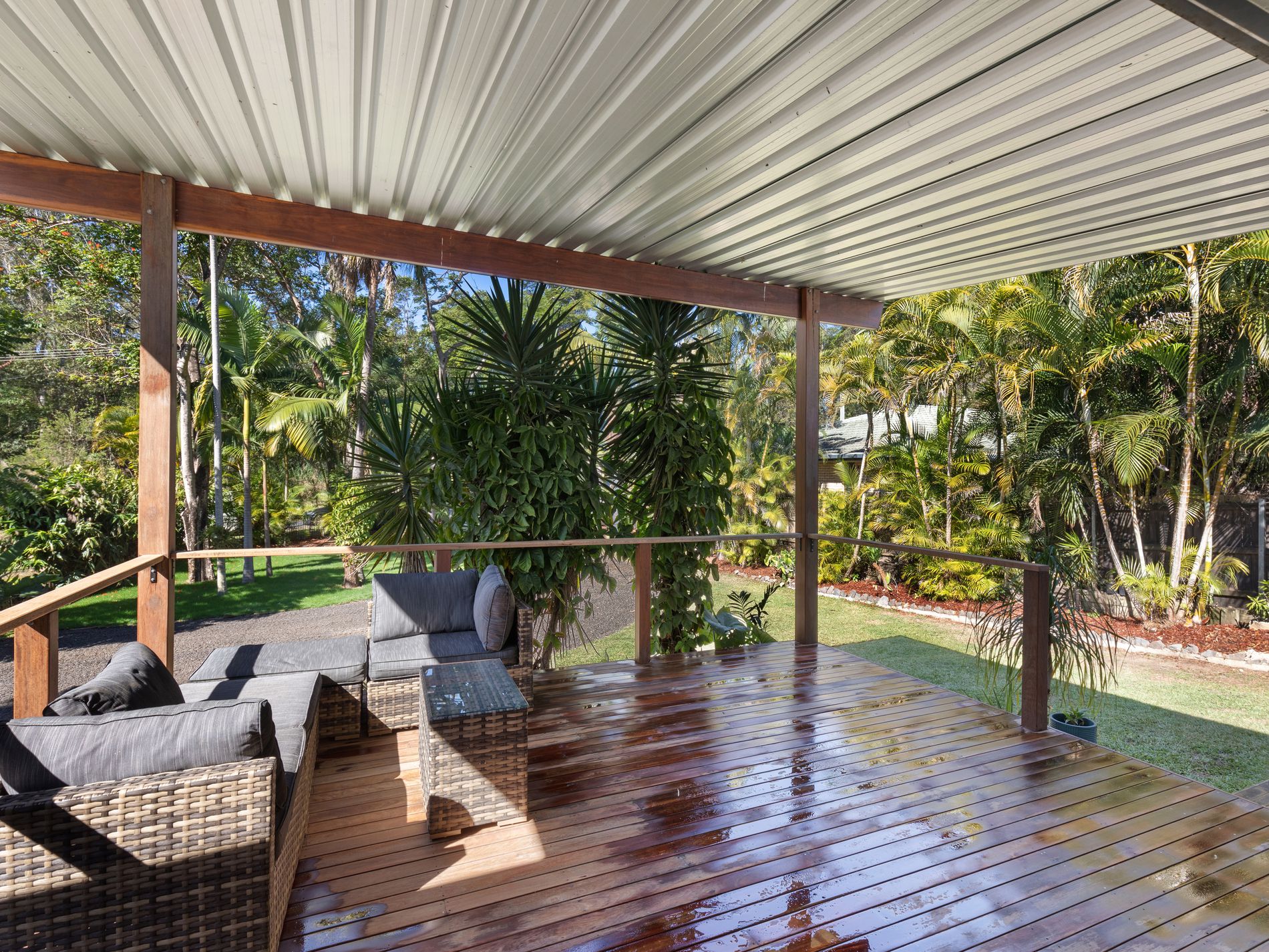 Expansive front undercover deck for relaxing and entertaining