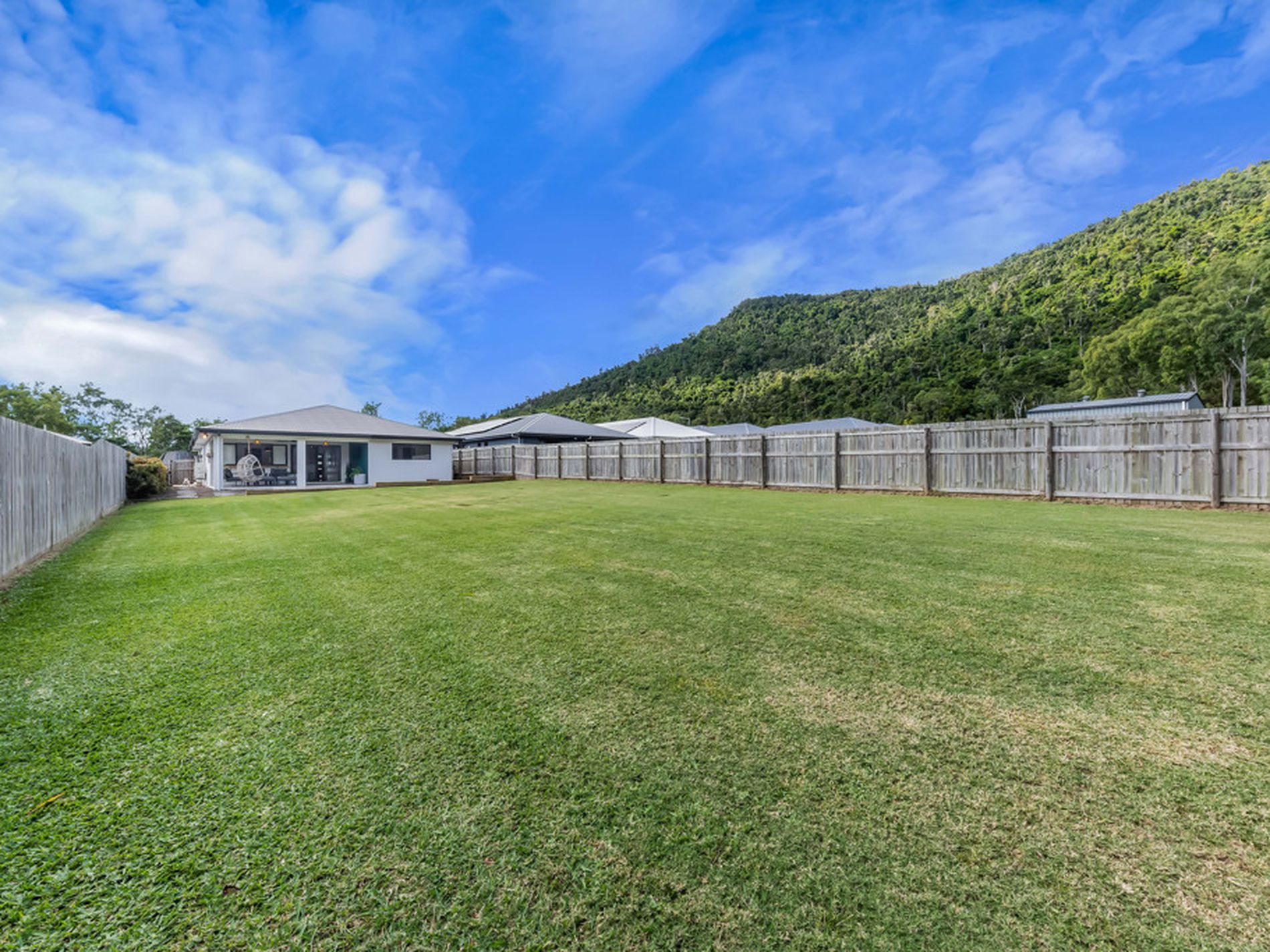 With plenty of room for a pool and cabana or for kids to kick a football around this large, flat, fenced backyard backs onto parkland and offers stunning mountain views from the large entertaining area. The large backyard also offers rear double gate access.