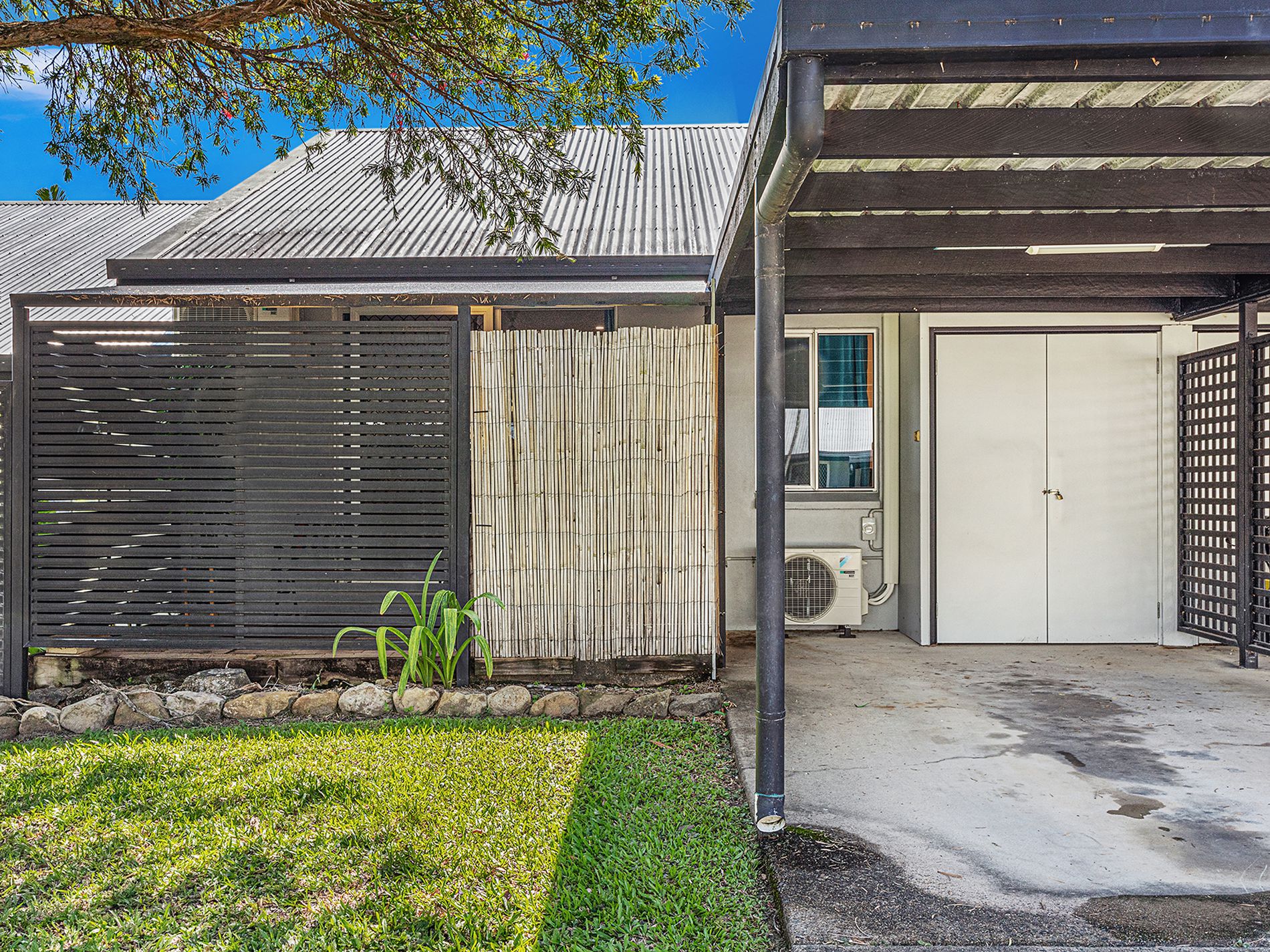 - One undercover carport with storage locker at the front of the unit.
