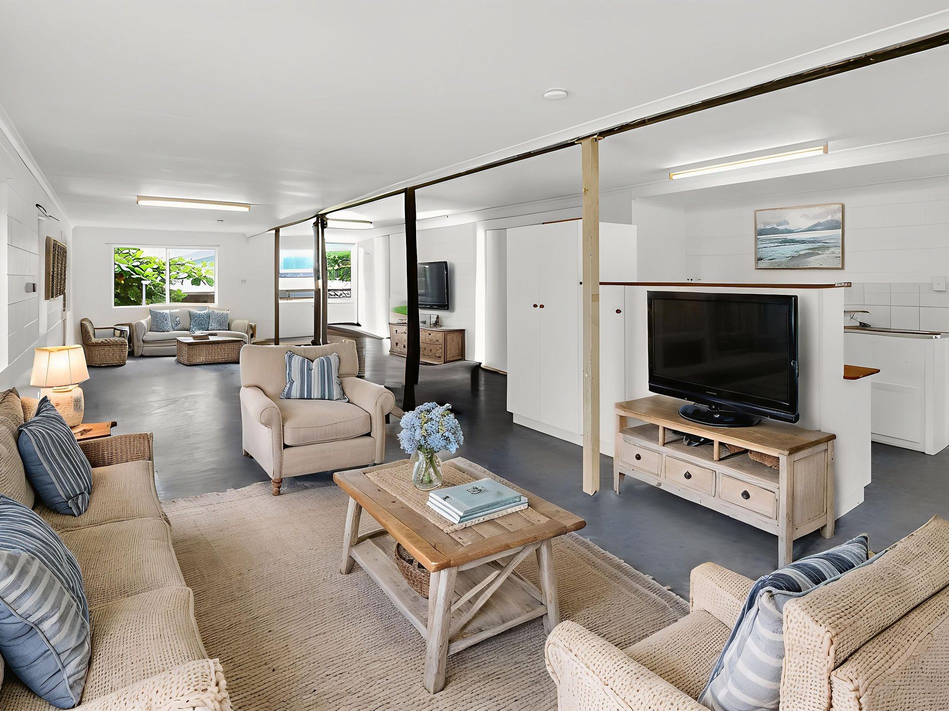 The lower level adds another dimension of versatility, incorporating a second bathroom and a large open-plan studio currently utilised as a third bedroom. With existing infrastructure already in place, this space offers excellent potential to be reconfigured into additional bedrooms, guest accommodation or a fully self-contained living zone, making it ideal for extended family living or income-producing arrangements (subject to relevant approvals).